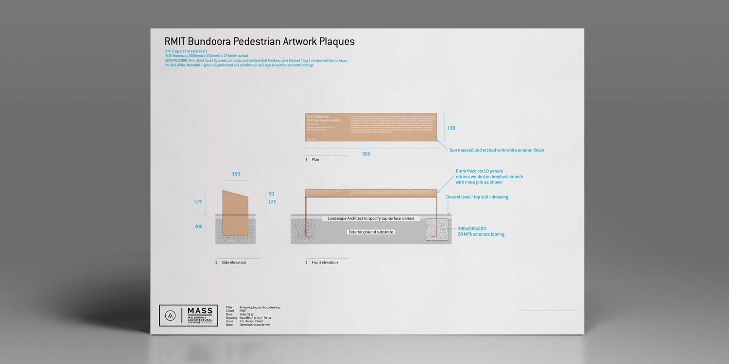 RMIT at Bundoora has an impressive outdoor art collection. We worked with the University, Peter Elliott Architecture and Taylor Cullity Lethlean landscape architects to develop the form concept, design the graphic information, fabricate...