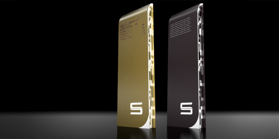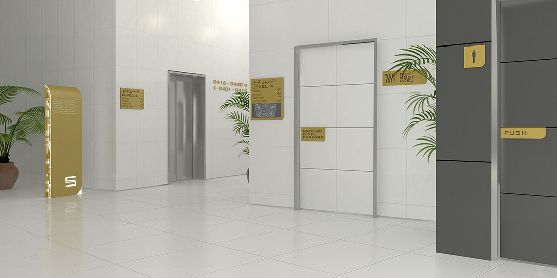 Signage design in conjunction with Orbit Architecture for this multi-storey residential development of two towers in Abu Dabi. The design closely follows supplied guidelines, which were expanded, refined and documented for actual production and installatio