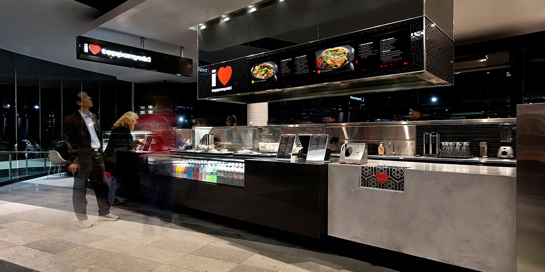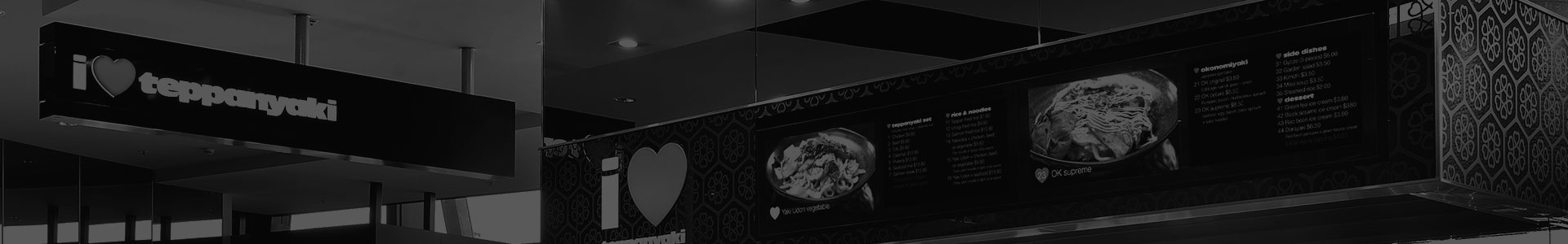 A unique high end Japanese food court concept at Westfield Doncaster. We developed the logo and subsequent application to bulkhead glass graphics and light box signage.