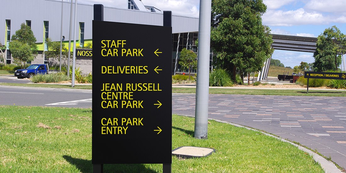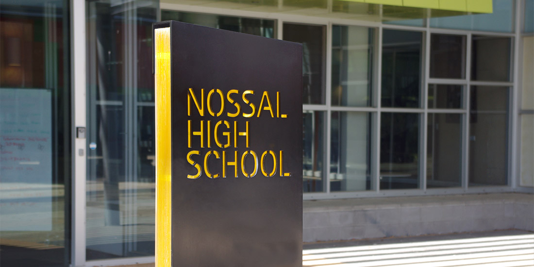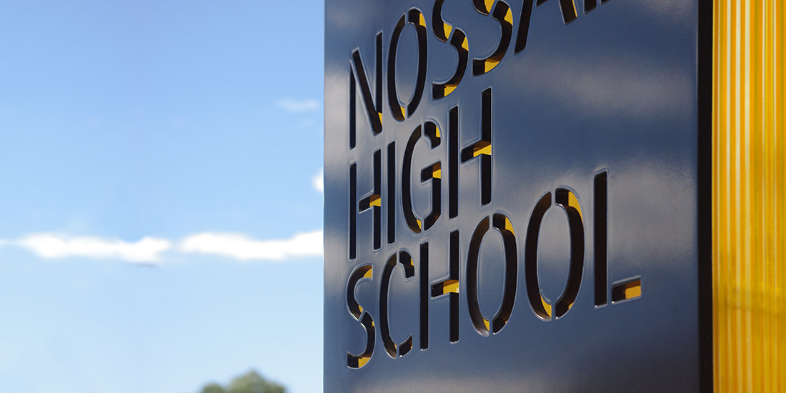 We designed a comprehensive sign system for this select entry state high school. The system covered campus identification, wayfinding, building directory, destination labelling, small feature sign panels, and statutory, regulatory and fire signage.