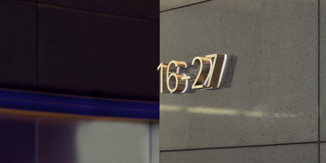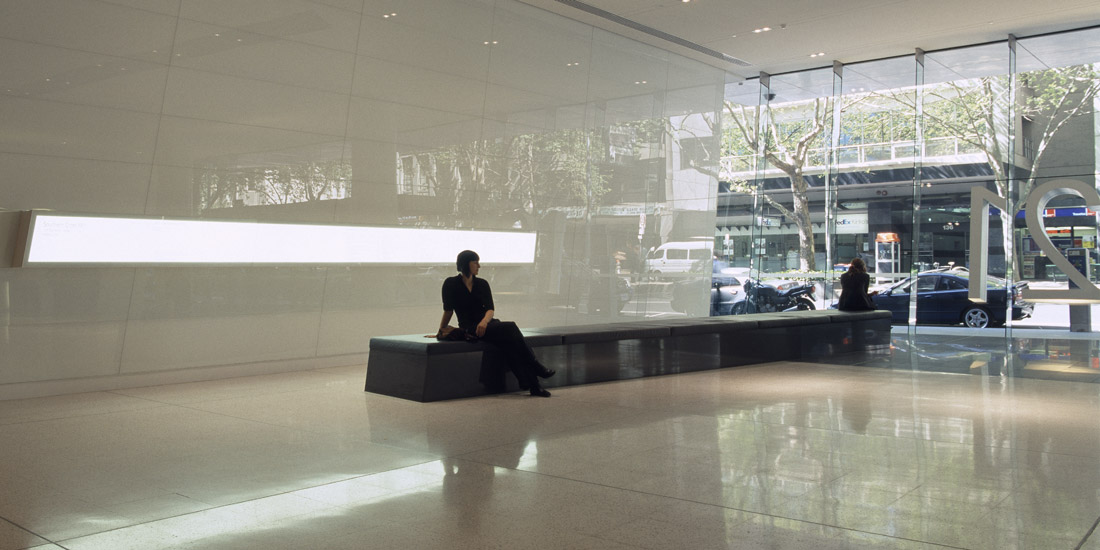Subtle cues from strong architectural and interior design concepts, are used in the signage for this office tower in Exhibition Street Melbourne. The signage design is necessarily neutral and minimal, and covers building identification, building directory, lift bay identification, level numbering, and label, fire and statutory signage.