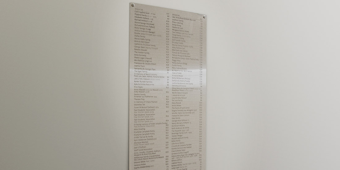 As part of this new theatre, we designed, made and installed dedicated plaques to seats and sign panels in the auditorium entries.