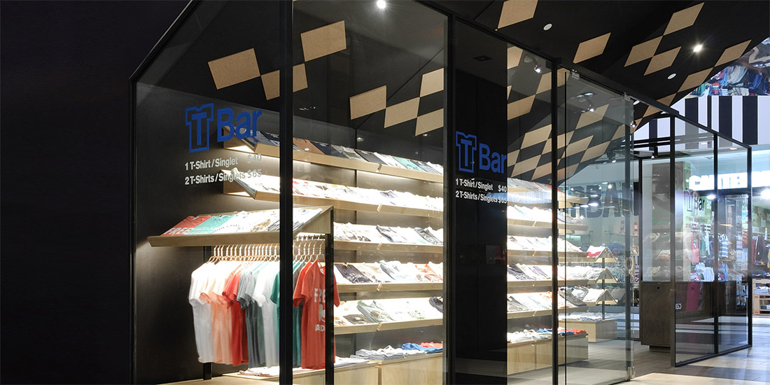 When Univers designed the T Bar brand graphic concepts, including the logo, we rolled out the design to in store experiences through signage.Prior to acquisition of T Bar by the Cotton On Group, their signage could be seen on stand alone stores throughout Australia.
