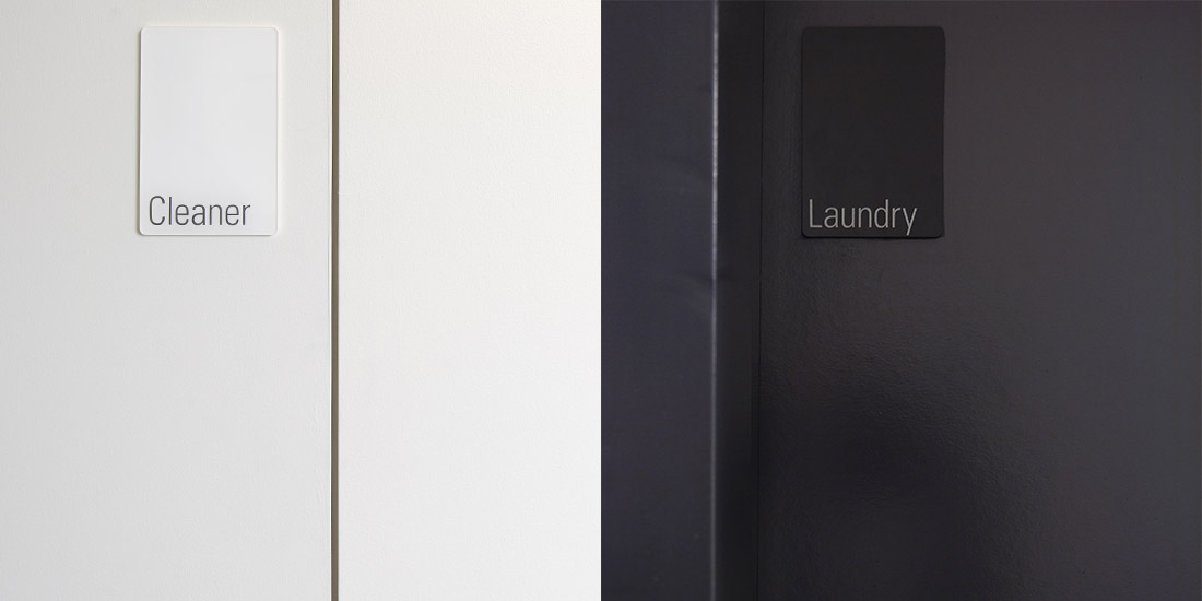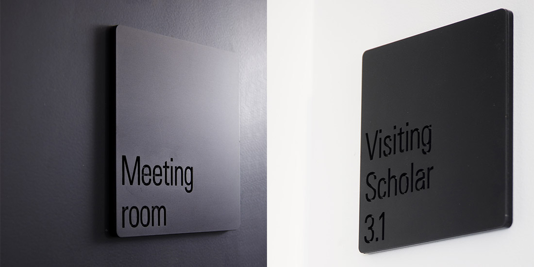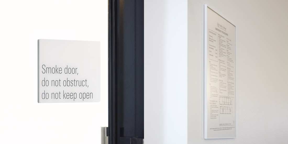 The Gourlay building at Trinity College in Royal Parade Parkville is signed with legible, useful and durable items which give residents an opportunity to personalise their dorm. The signage supports a warm, understated and well detailed architectural concept by Peter Elliott Architecture. Our work included conceptual design, sign planning, documentation, fabrication and installation.
